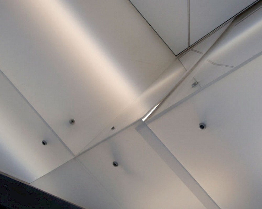 Artists Vito Acconci was commissioned to design an installation for San Francisco Airport’s new International Terminal. His concept was to “freeze” rays of light in mid ricochet as they traveled down a busy passenger corridor. Our firm was selected to help the artist express this vision in built form. The result is a series of steel tubes arrayed with carbon steel standoffs that served both as light mounts and hangers for panels of translucent plexiglass. Collaboration: Vito Acconci. artist.