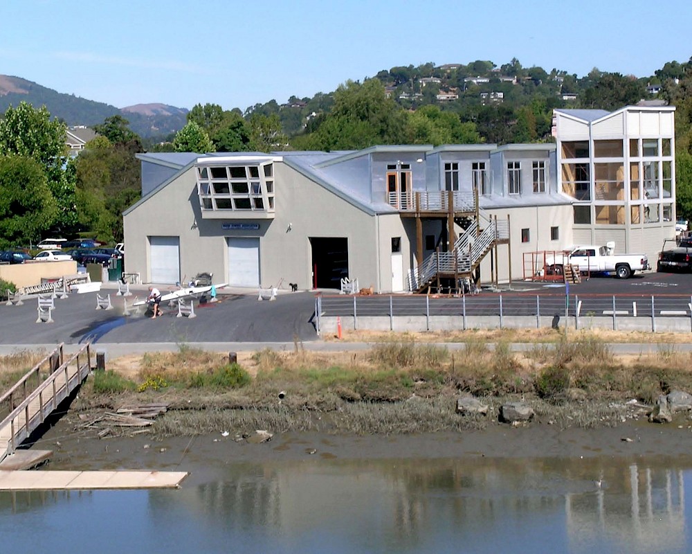 The MRA had outgrown their original Corte Madera Creek boathouse. We got involved to help this non-profit imagine and construct a new facility. Elements of the original building were reused/repurposed while redesigning and expanding the structure. The ground floor is devoted to boats, lockers, and restrooms. The upper floor features workout space, staff offices, and a community room. The two are connected by a stair/ elevator tower standing like the coach beside the rowing shell, dormers uplifted like pars ready to race.