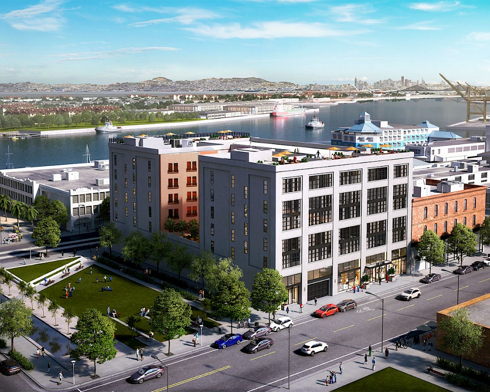 Oakland’s warehouse districts are witnessing an influx of new life with the rehabilitation of old structures and new residential developments such as this 134 unit, 7 story project. The design recall the industrial history of the neighborhood with the appearance of a rugged concrete frame and metal sash windows, yet its lush courtyard creates a private oasis. The development is planned with a variety of unit types/sizes and amenities including a double-height lobby, clubhouse, gym, meeting rooms and a roof terrace. The ground floor features two commercial spaces. Type 3 over concrete podium construction. Developed for Mill Creek Residential Trust.